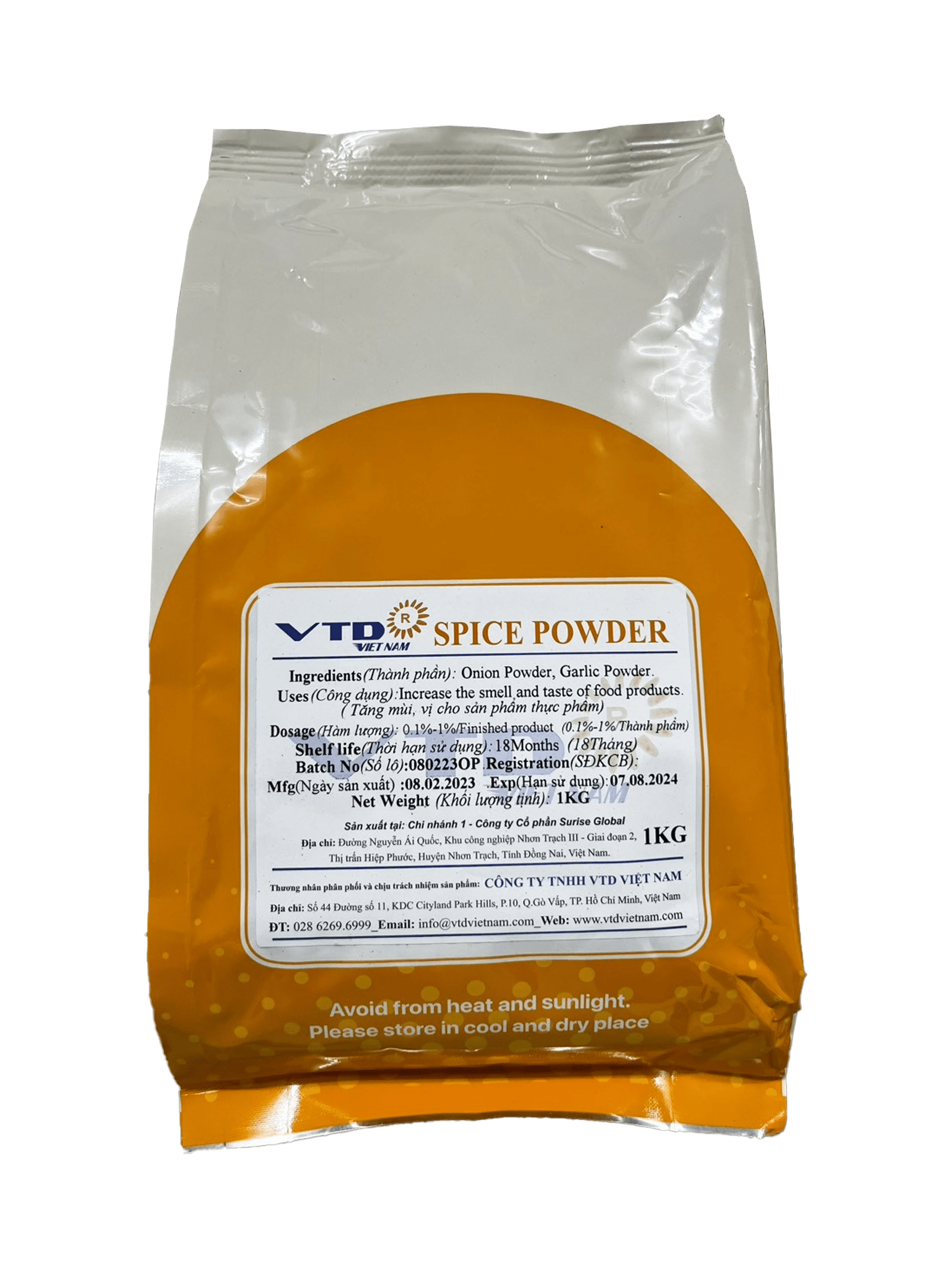Bột tỏi hành VTD được làm từ 100% hành tỏi khô và được nghiền, xay thành bột. Bột tỏi giúp nhà sản xuất tiện lợi khi sử dụng và lưu trữ được trong khoảng thời gian dài.