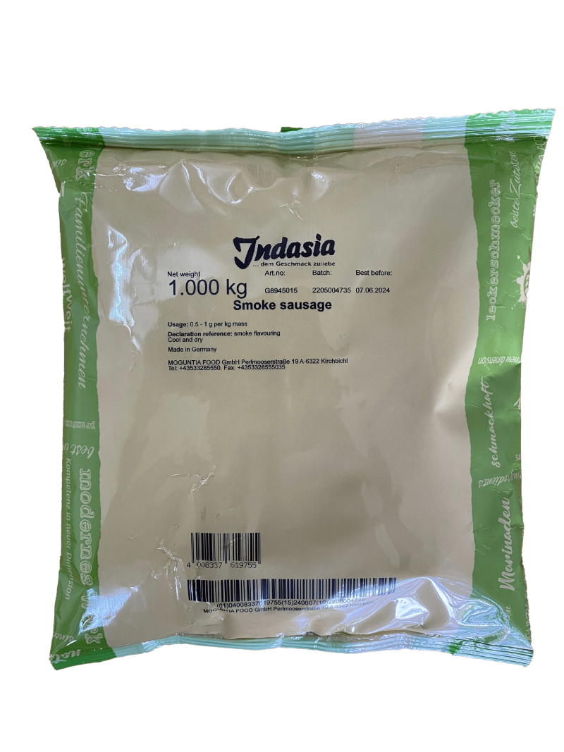 BỘT HƯƠNG KHÓI – SMOKE SAUSAGE: tạo hương vị xông khói đặc trưng cho các sản phẩm cần mùi vị xông khói. Hương thơm xông khói của Smoke Indasia có hương thơm tự nhiên của gỗ sồi, không bị hắc, giúp sản phẩm thực phẩm có mùi vị như được xông khói trong lò.